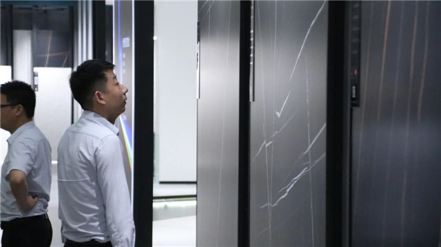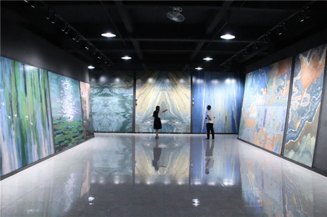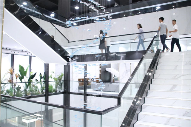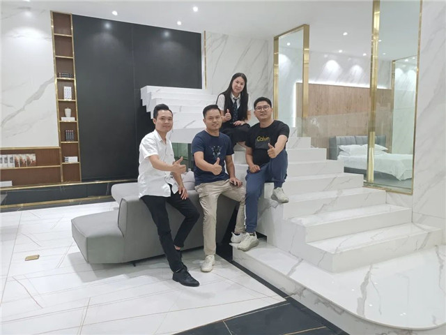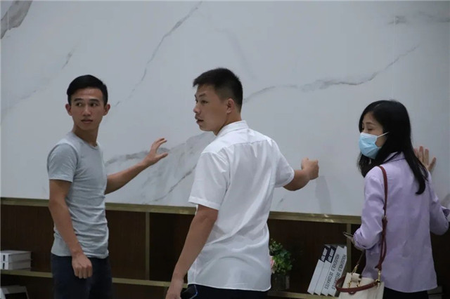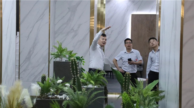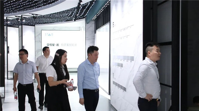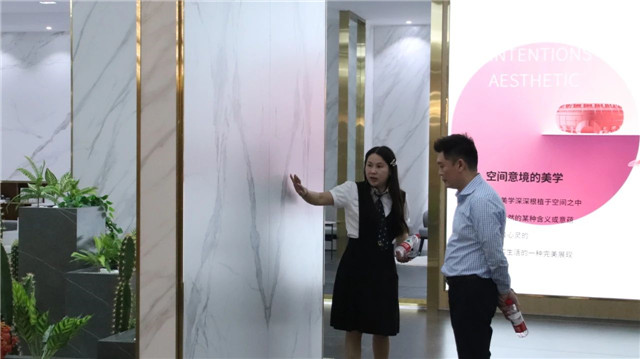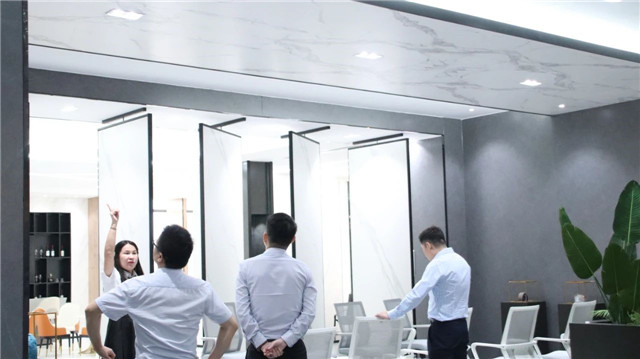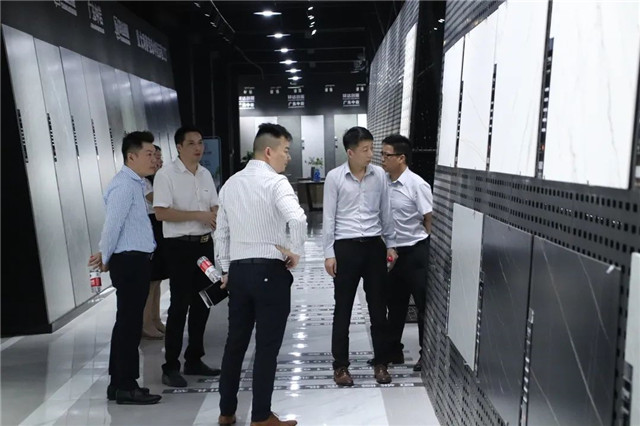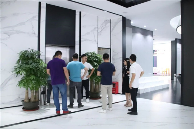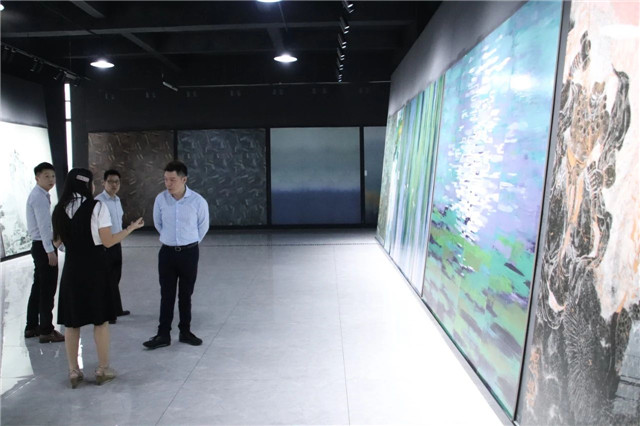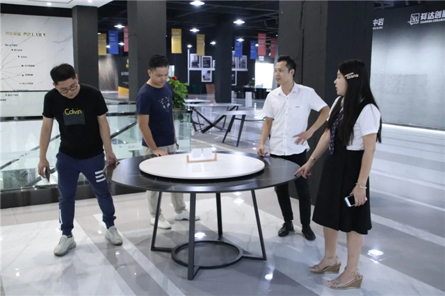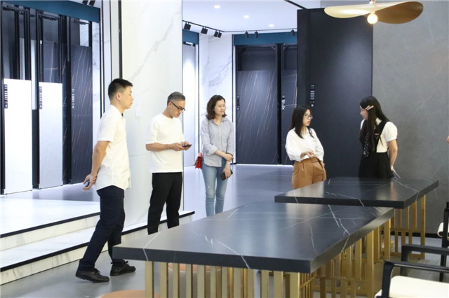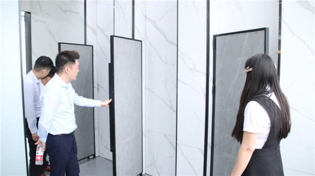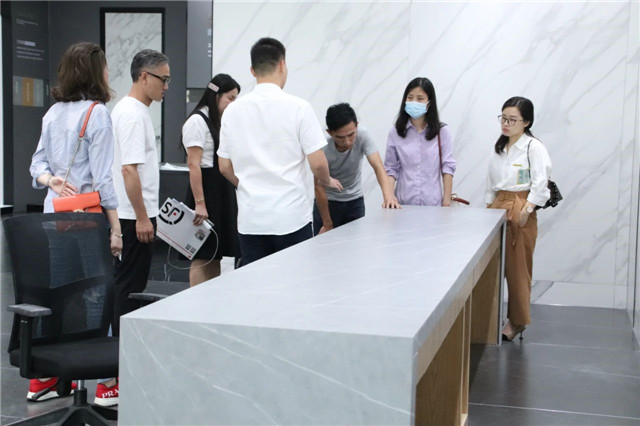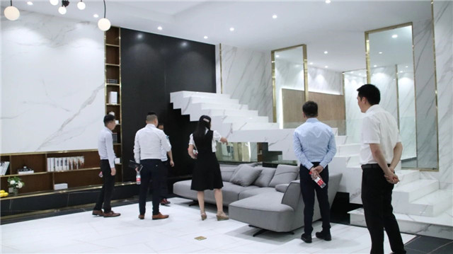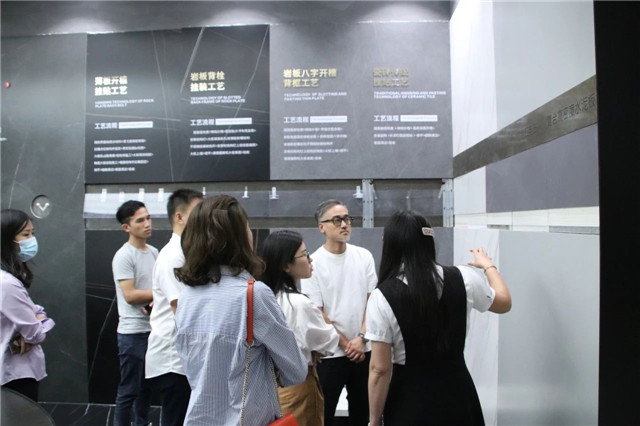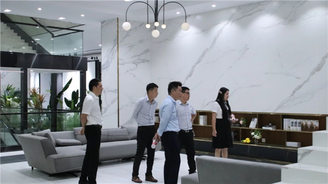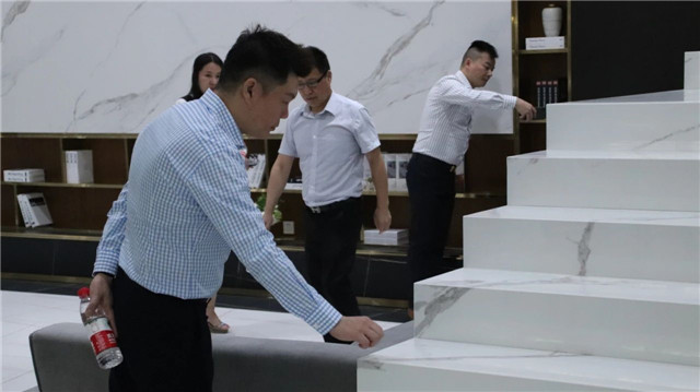 联邦高登团队一行首先参观了广东中岩全新的轻奢智能岩板展厅。