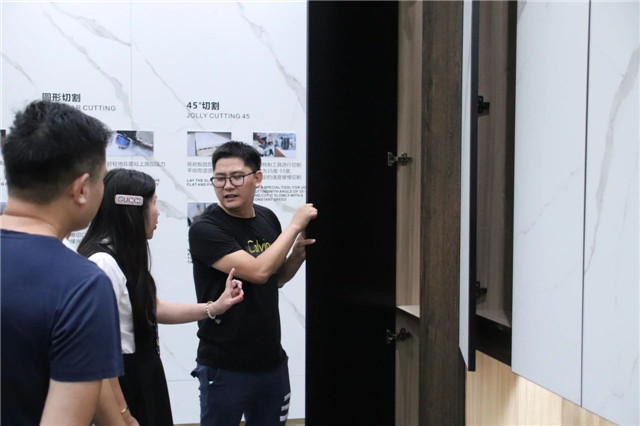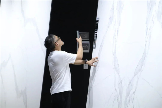 广东中岩的岩板具有耐磨防污,抗拒耐寒,高硬度等优点,其优异的二次加工性能,可广泛用于背景墙、整体卫浴、橱柜、衣柜的门板和面板等,满足不同空间的装饰需求。也是联邦高登团队参观调研的动力之一。